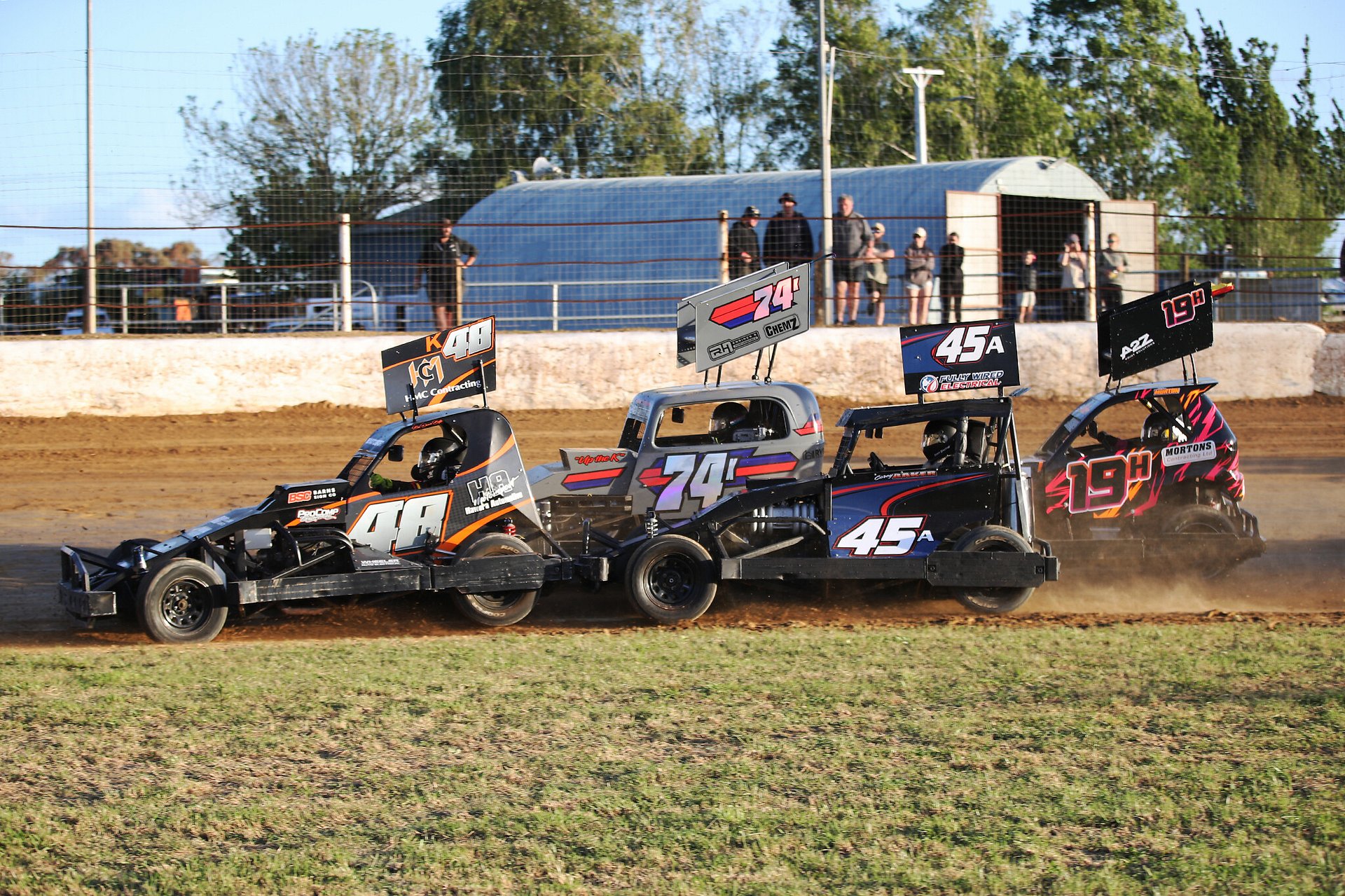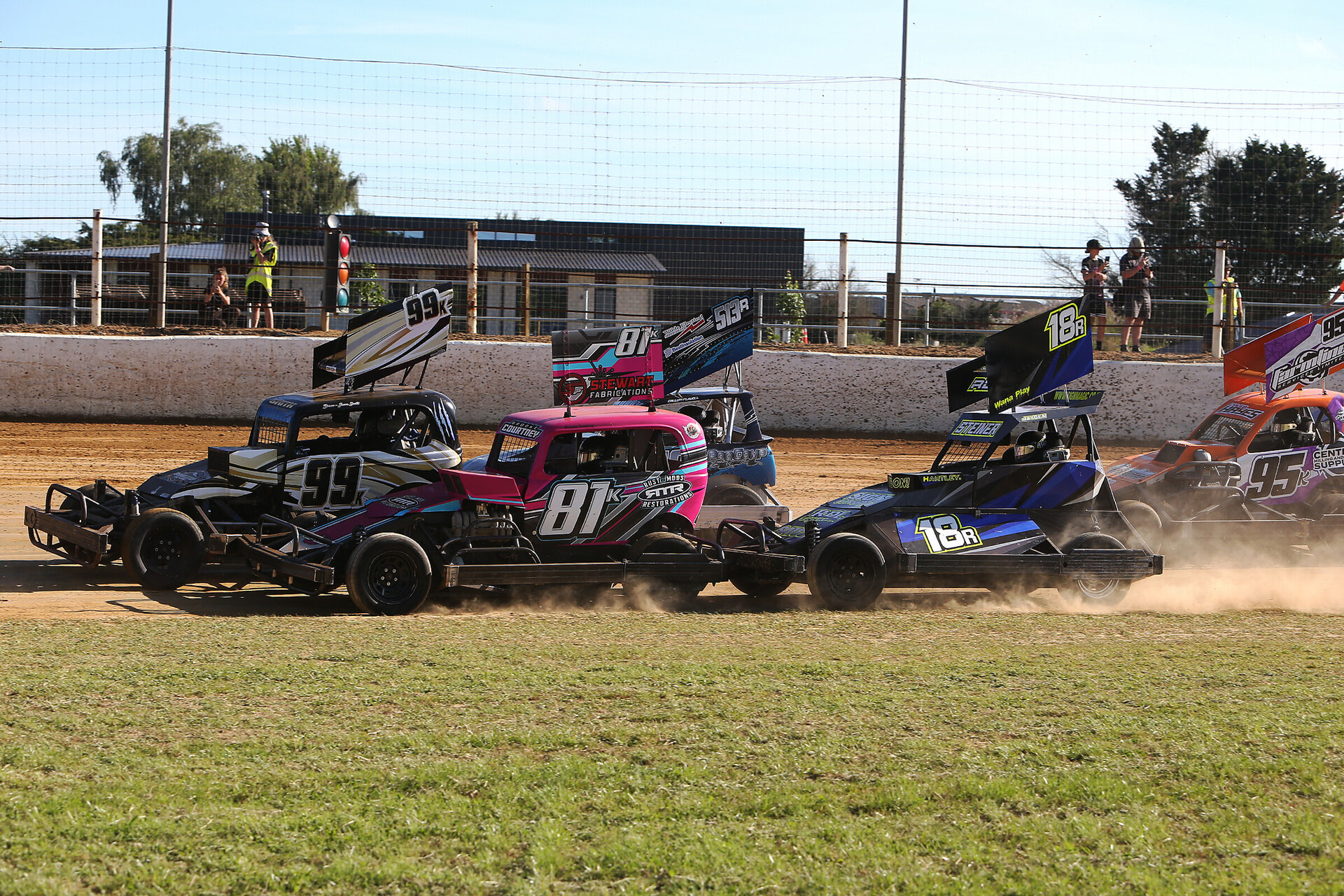 In the early years the club focused on the open wheel and bike classes. The concrete wall was built in the early 90’s and a wider range of speedway classes were added to the schedule. Today Kihikihi Speedway contracts Saloons, Super Saloons, Superstocks, Stockcars, Youth Ministocks, Midgets, TQ Midgets, Sprintcars & Sidecars