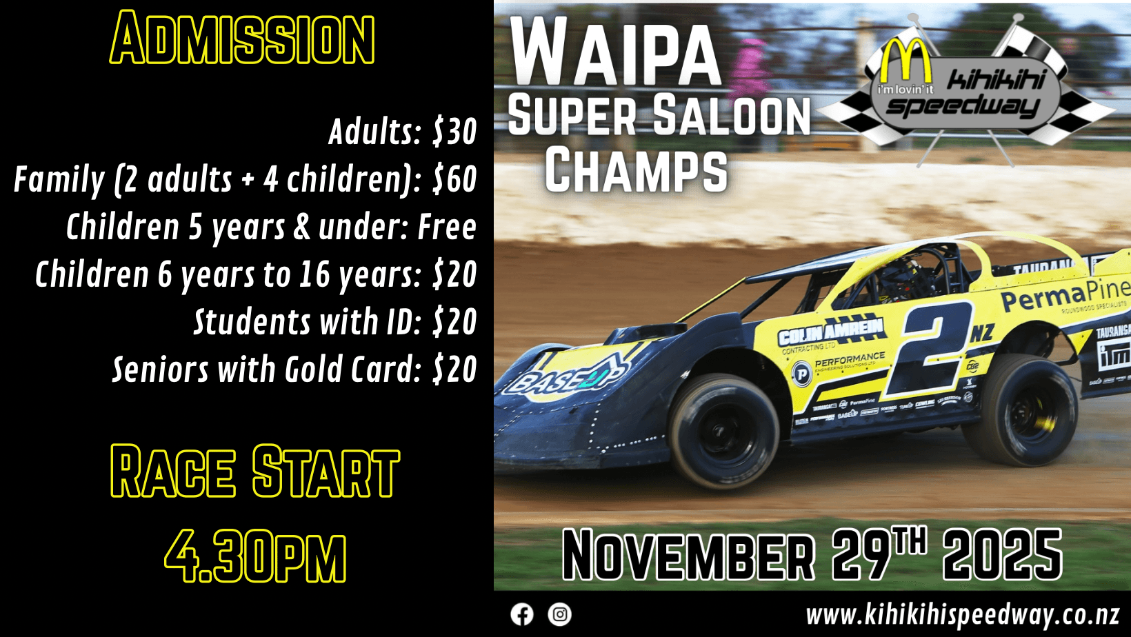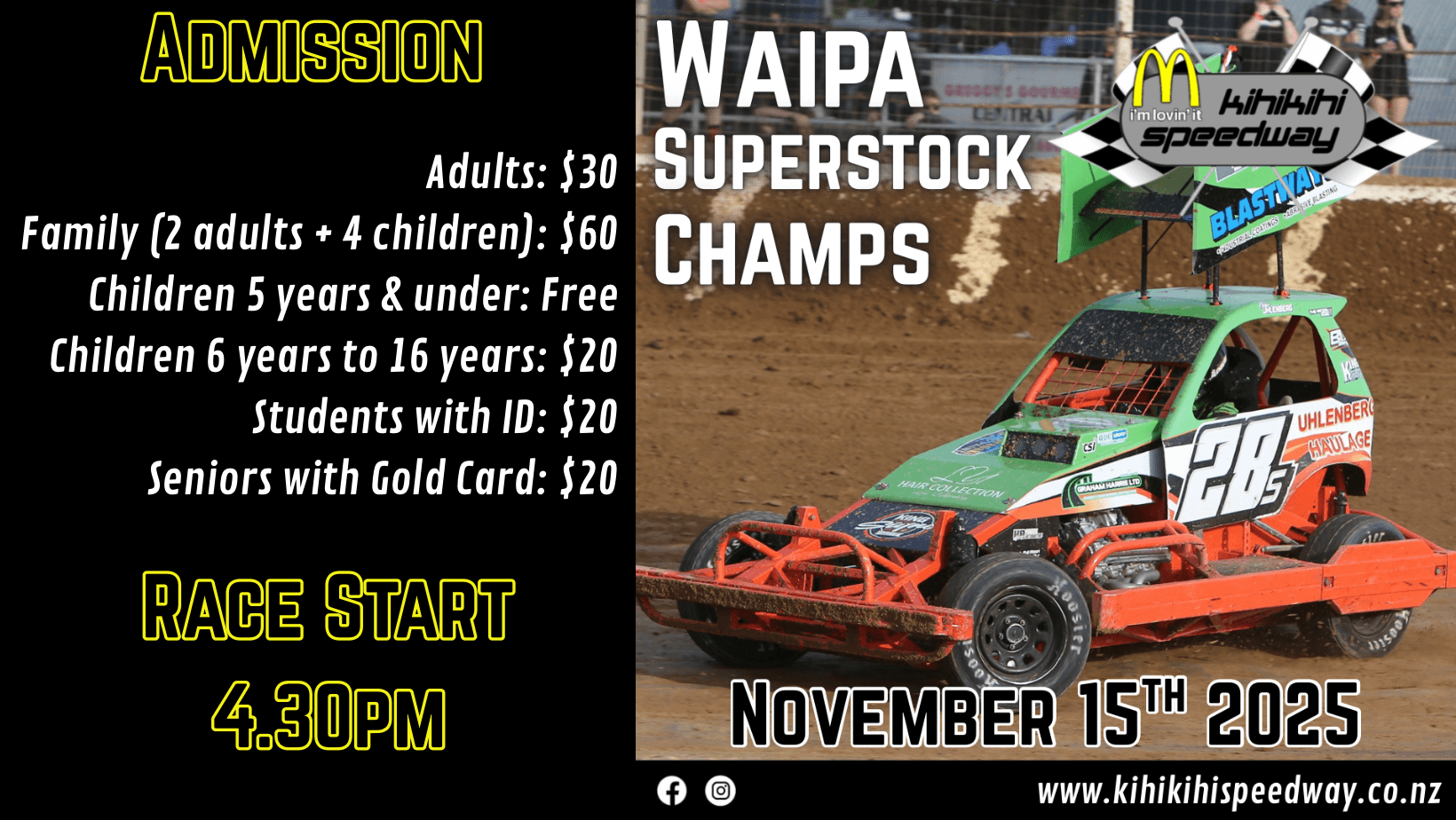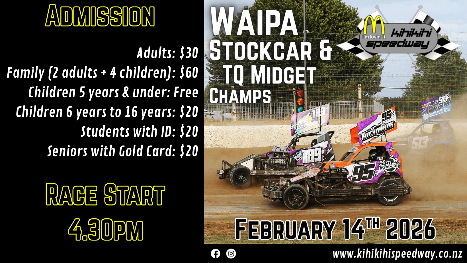 Waipa Stockcar Champs - Waipa TQ Midget Champs - Superstocks - Saloons - Sprintcars - Ministocks