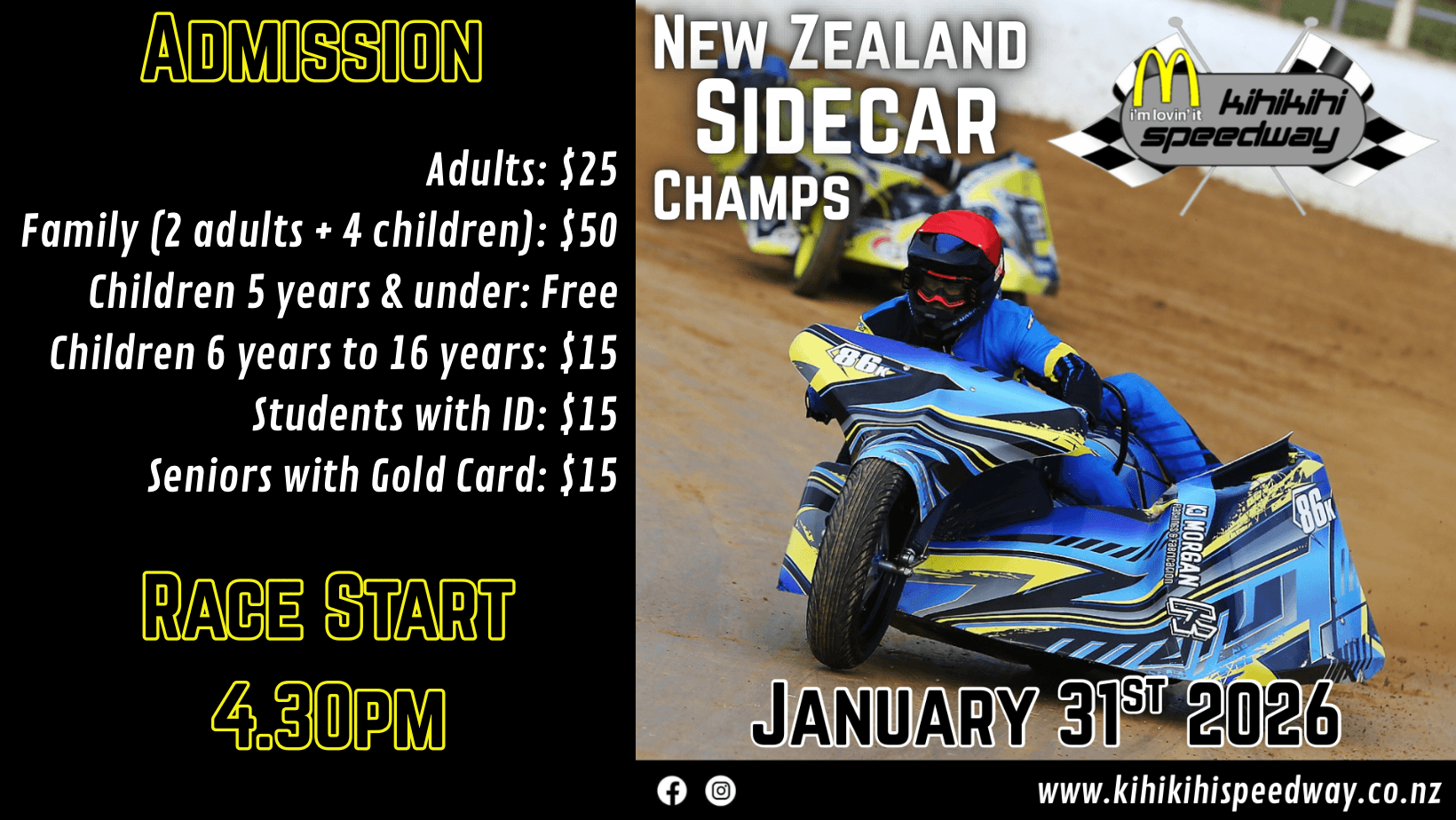 Friday 30th January 2026 - NZ Sidecars Practice - 4.30pm start